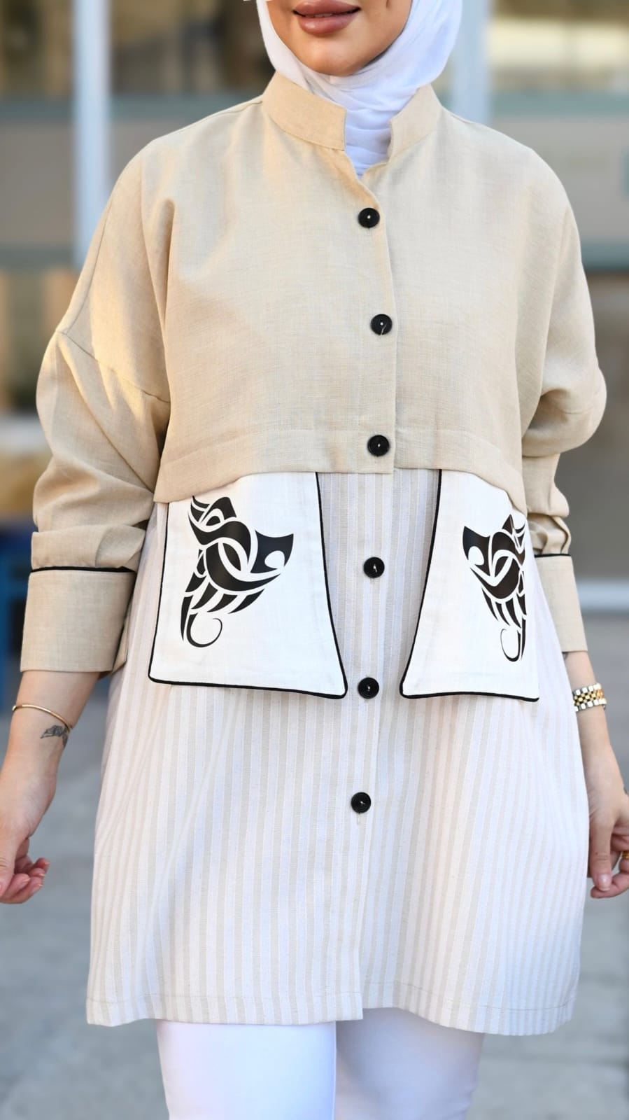 & Free Shippingهذا القميص هو الخيار المثالي الذي يجمع بين الأناقة والراحة. احصلي على إطلالة مميزة تعكس شخصيتك الفريدة، وكوني دائماً في قمة أناقتك مع هذا القميص البيج الرائع.