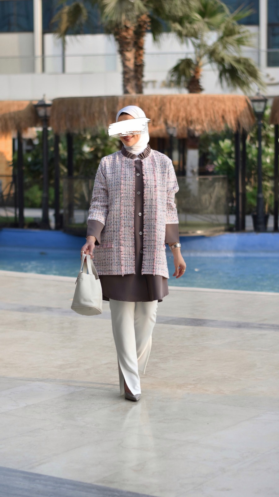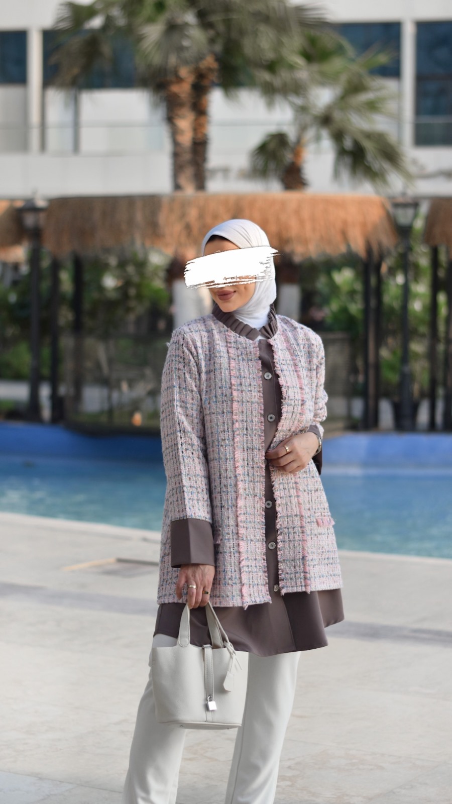 استمتع بإطلالة أنيقة ومتميزة مع معطف التويد الوردي الذي يجسد الفخامة والرقي. يتميز هذا المعطف بتصميمه الكلاسيكي الذي يضفي لمسة من الأنوثة على أي ملابس ترتديها. مصنوع من قماش تويد عالي الجودة، يوفر لك الدفء والراحة في الأيام الباردة، بينما يضمن لك مظهرًا عصريًا وجذابًا. يضفي اللون الوردي الناعم لمسة من الحيوية، مما يجعله خيارًا مثاليًا لمختلف المناسبات، سواء كانت رسمية أو غير رسمية.